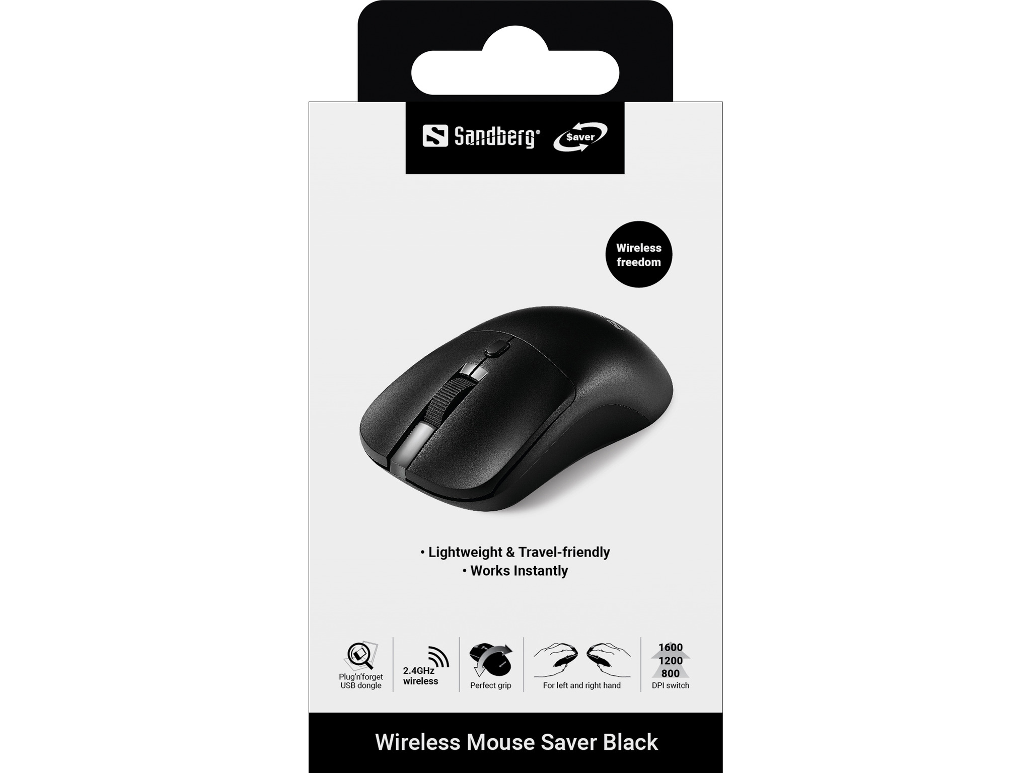 Sandberg Wireless Mouse Saver vám dává svobodu zbavit se kabelů. Stačí zapojit přiložený USB dongle do počítače a jste připraveni. Přepínejte mezi 800, 1200 a 1600 DPI podle toho, zda potřebujete rychlost nebo přesnost. Lehká, jednoduchá a snadno přenosná kamkoliv. Funguje pro leváky i praváky.