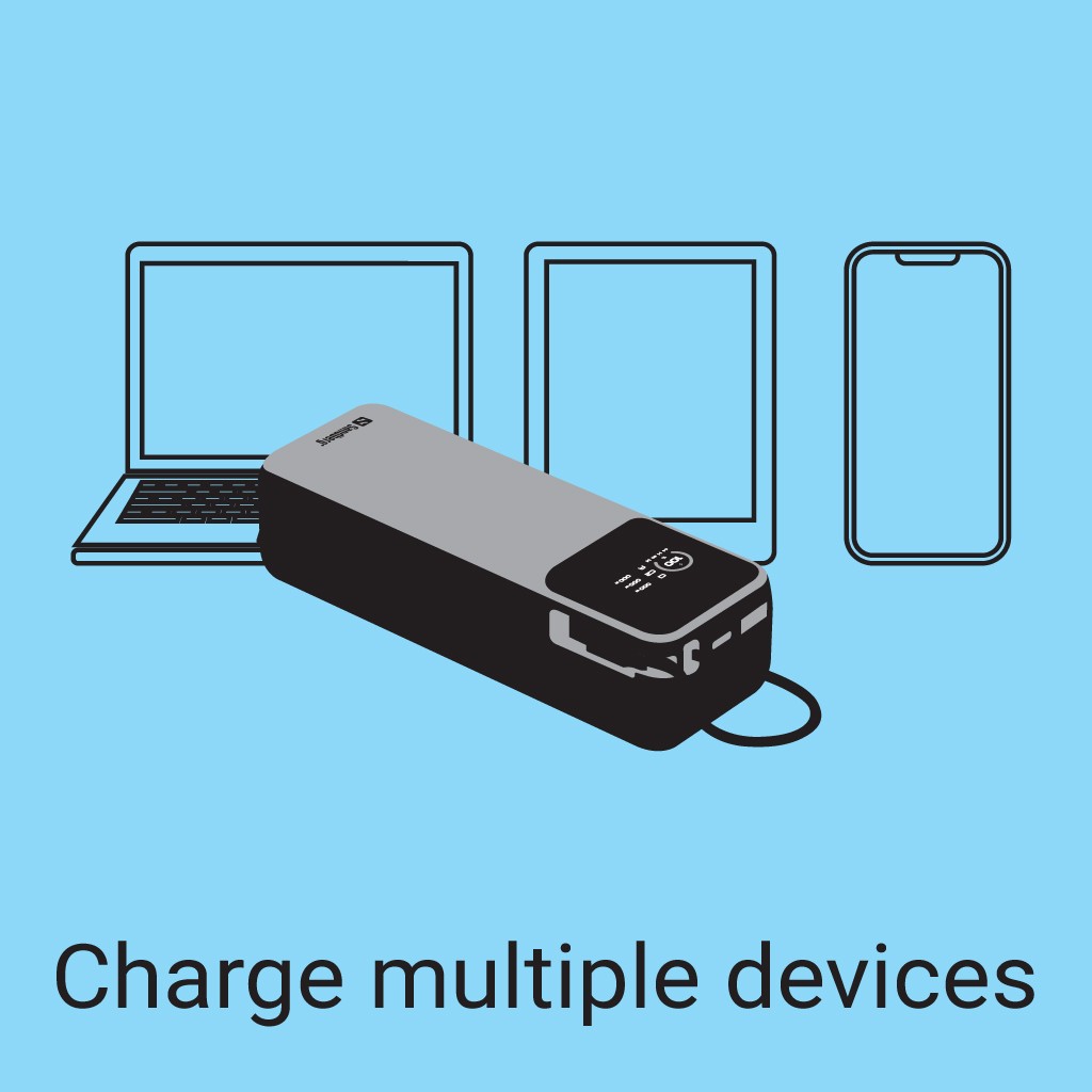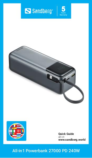 Sandberg All-in1 Powerbank 27000 PD 240W is for those who demand maximum performance. With a built-in USB-C cable, a USB-C port, and a USB-A port, you can charge your laptop, smartphone, and other gear all at once – with up to a wild 240W total output. The smart color display gives you full insight: see capacity, power consumption, and charging in real-time. And with 27000 mAh, it's still within the limit to take in the cabin on flights. Pure power, packed elegantly and efficiently.